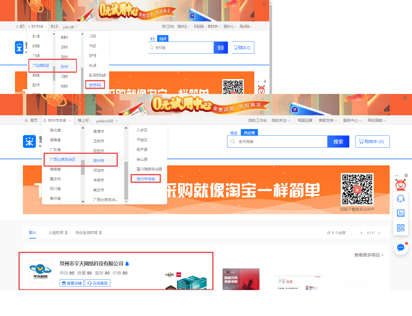 热烈庆祝贺州市宇天网络科技有限公司于2022年5月12日正式入驻政采云平台,点击进入《宇天网络科技政采云平台》